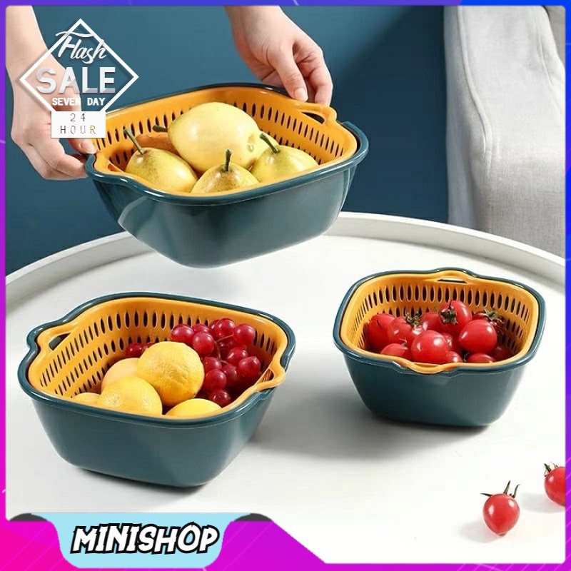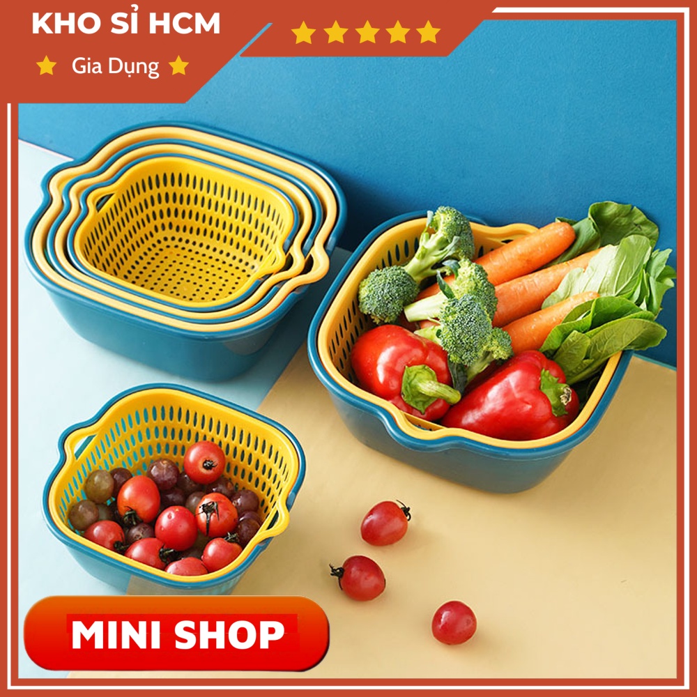 (Sỉ 35k) Combo Rổ 6 Món, Rổ Nhựa Chậu Ráo Nước Hai Lớp ZA13
