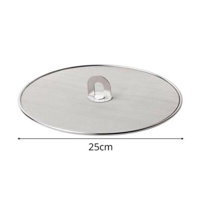 Chất liệu inox, tay cầm cũng bằng inox dày dặnDùng đậy chảo khi chiên/ xào/ rán ... cho mỡ khỏi bắn ra ngoài