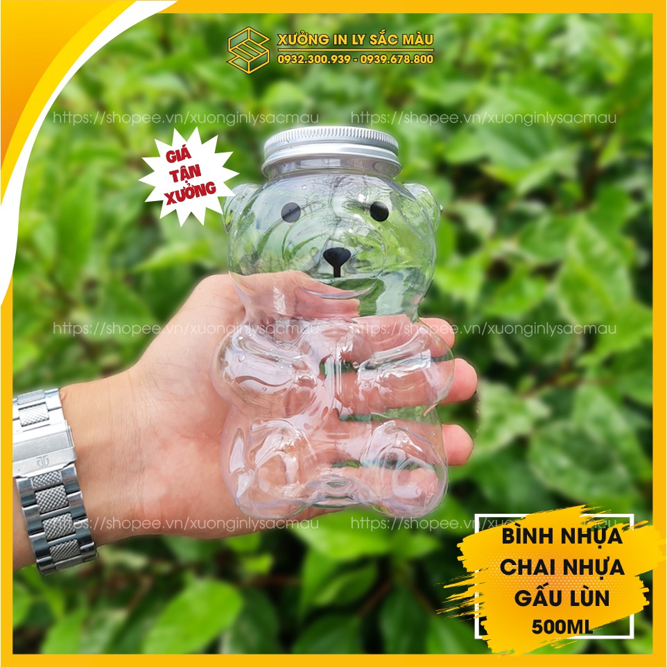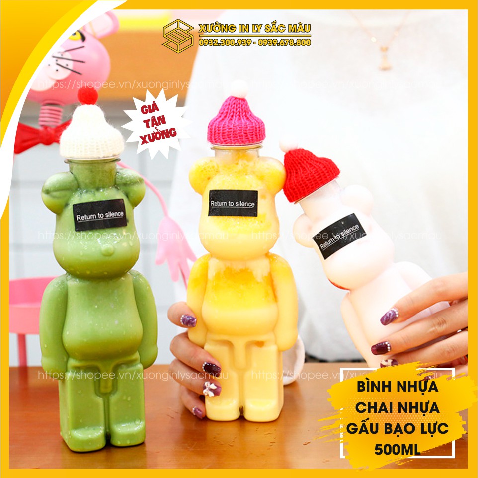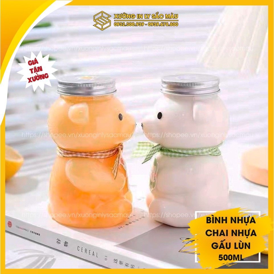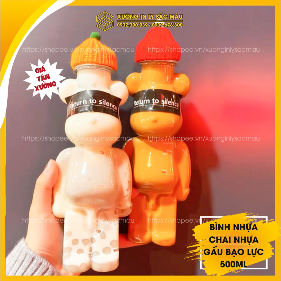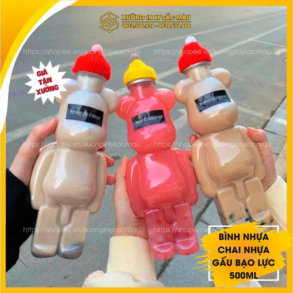 Sỉ 50 bình Gấu Beabrick, Gấu lùn Teddy, Gấu Pooh đựng nước ép, trà sữa, sinh tố hot trend✔ Chất liệu: Bình nhựa PET