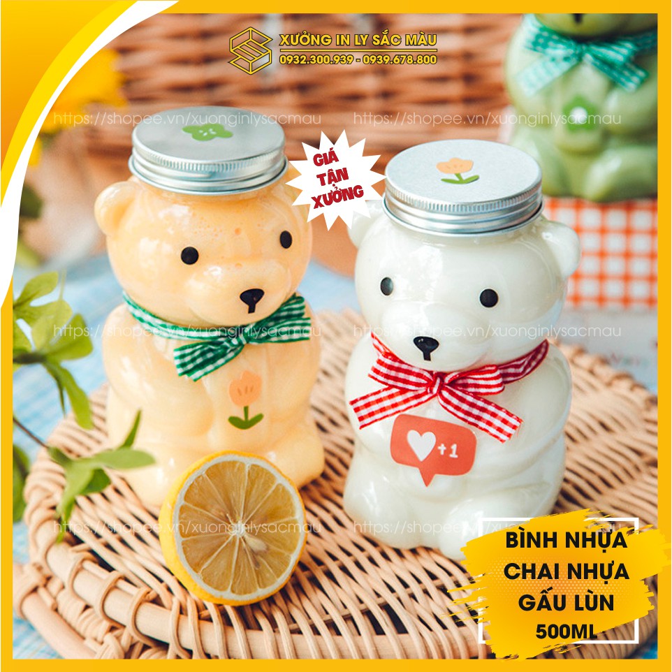 Sỉ 50 bình Gấu Beabrick, Gấu lùn Teddy, Gấu Pooh đựng nước ép, trà sữa, sinh tố hot trend