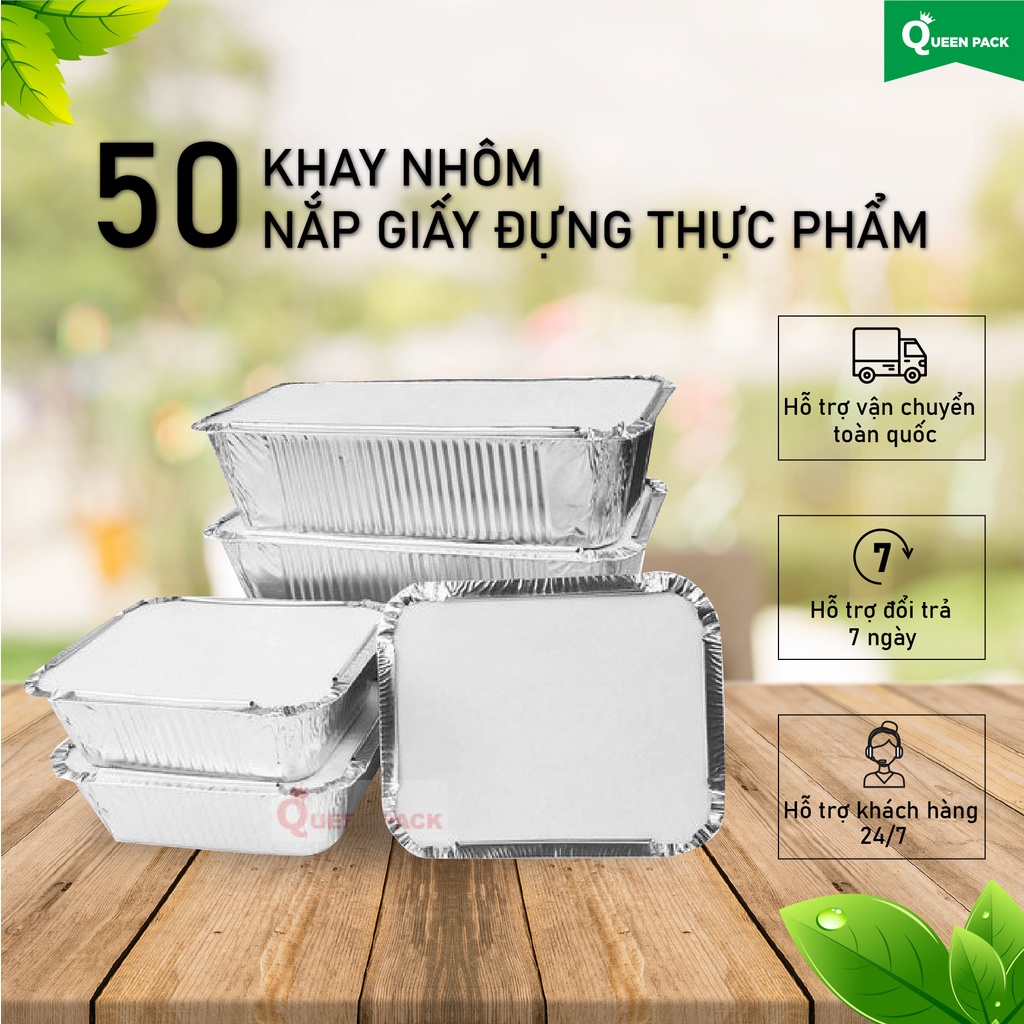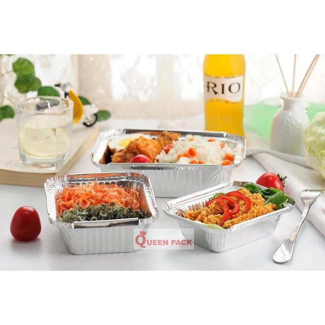 Sỉ 50 Cái Khay Nhôm 1 Ngăn Size 350ml/500ml/750ml/1200ml/2000ml Kèm Nắp Đựng Thực Phẩm Hàng Cao Cấp