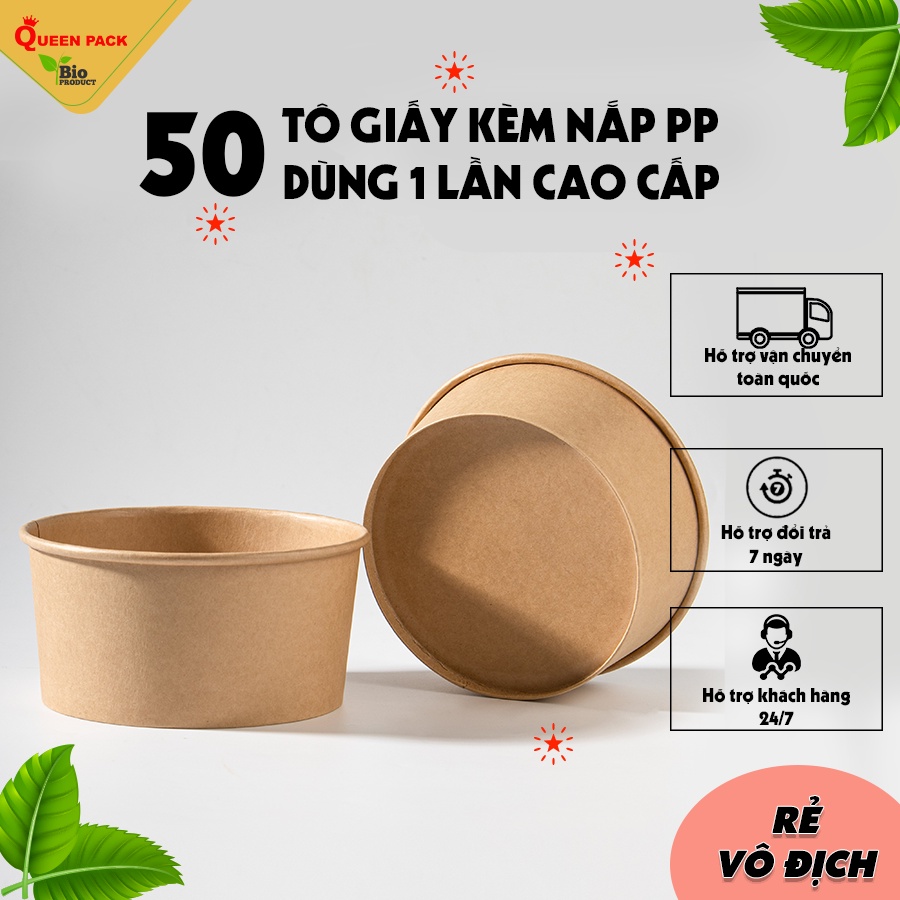 Nhà cửa & Đời sống > Bộ đồ bàn ăn > Tô || Sỉ 50 tô giấy kraft 750ml/1000ml/500ml/350ml đựng thực phẩm kèm nắp bằng chịu nhiệt PP cao cấp, dùng cho món phở, búnCòn hàng