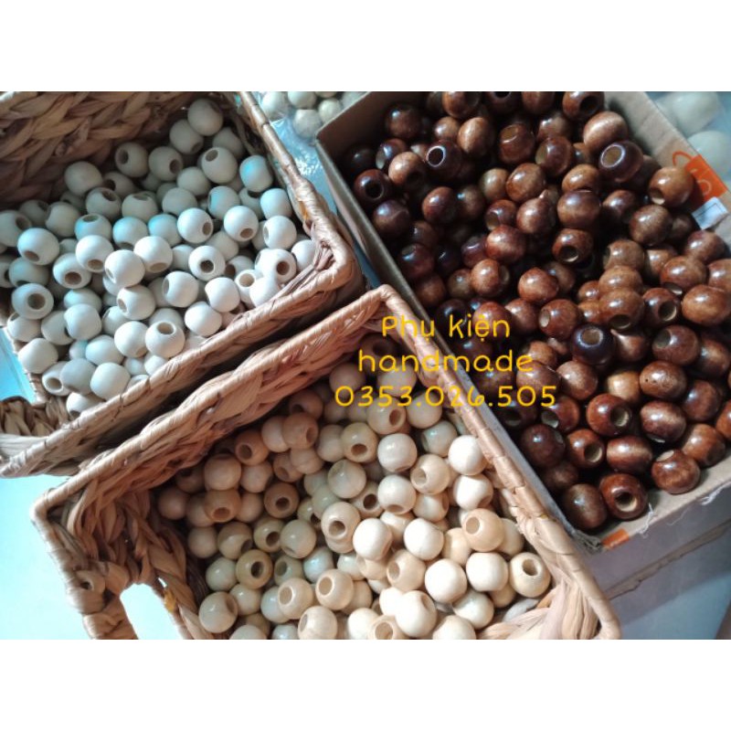 Giới thiệu [bán sỉ 50v ] Hạt gỗ nhiều size 10mm-12mm-14mm-16mm-20mm đường kính lỗ 0,5 -1cm làm Macrame, handmade, trang trí