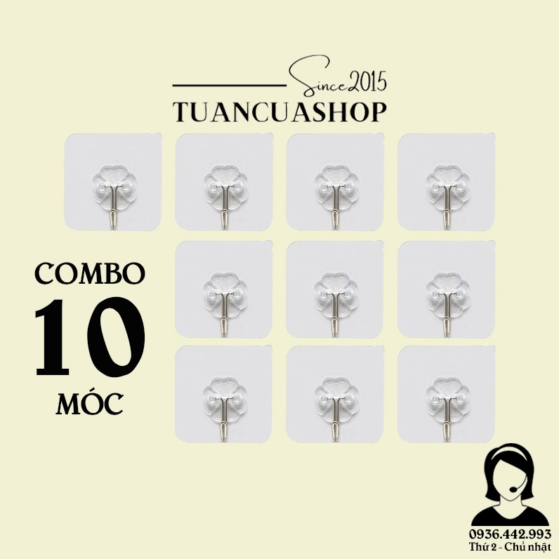 [SỈ 5800đ] COMBO 10 MÓC NHỰA DÁN TƯỜNG CHỊU LỰC TRONG SUỐT (MDT01)