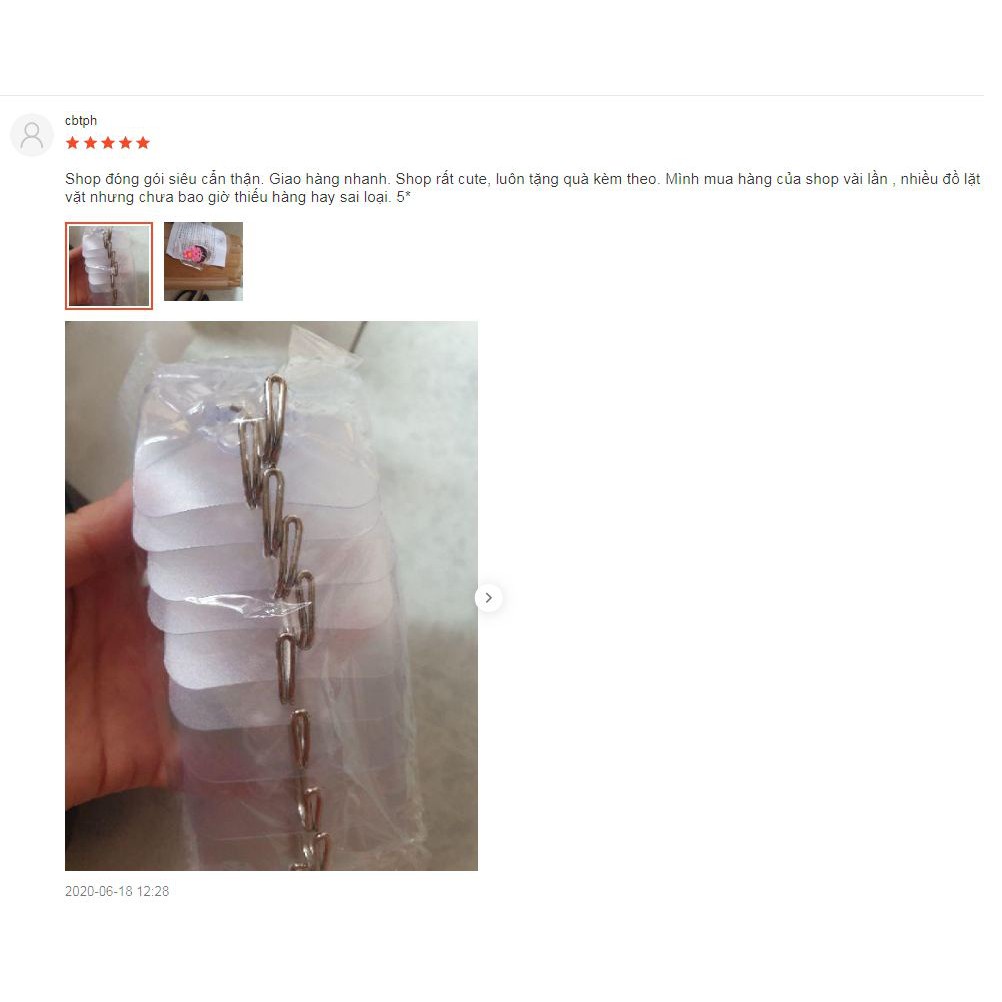"M đã nhận được hàng rồi shop nhé. Mua sản phẩm lúc khuyến mãi. Giá thành rẻ. Chất lượng tốt. ngườu bán, nhà vận chuyển và ship vẫn rất nhiệt tình. Mọi người ủng hộ shop này nhé""Móc treo chắc chắn, giá lại rất rẻ, shop giao hàng nhanh và phục vụ rất tận tình, đóng gói chắc chắn"