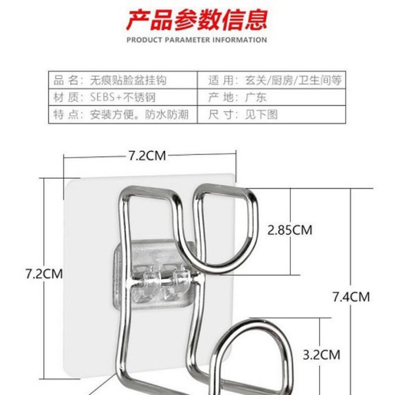 Móc inox dán tường treo Chậu nhà tấm- Chất liệu: Inox + Miếng dính nhựa PE siêu dính