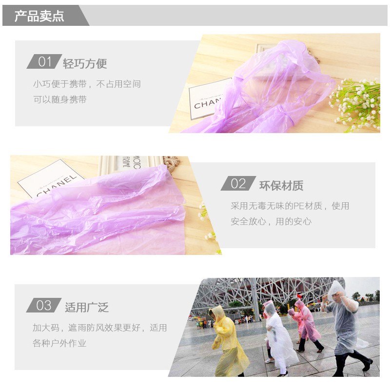 Giới thiệu [Bán Sỉ]Áo Mưa Dùng Một Lần-Áo Mưa Nilon Mỏng Nhẹ Phù Hợp Du Lịch, Dã Ngoại