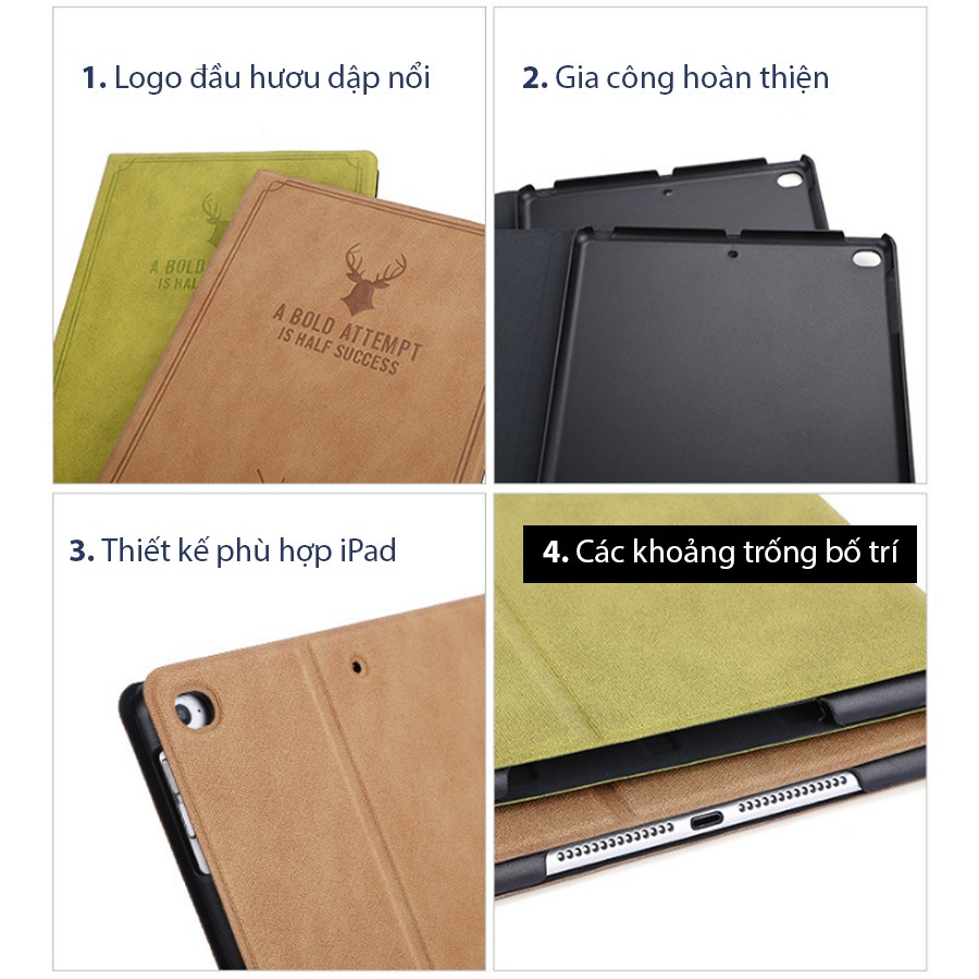 Bao Da iPad Dập Nổi Logo Đầu Hươu① Tính Auto wake On/Off tự động tắt iPad khi không sử dụng cực tiện lợi