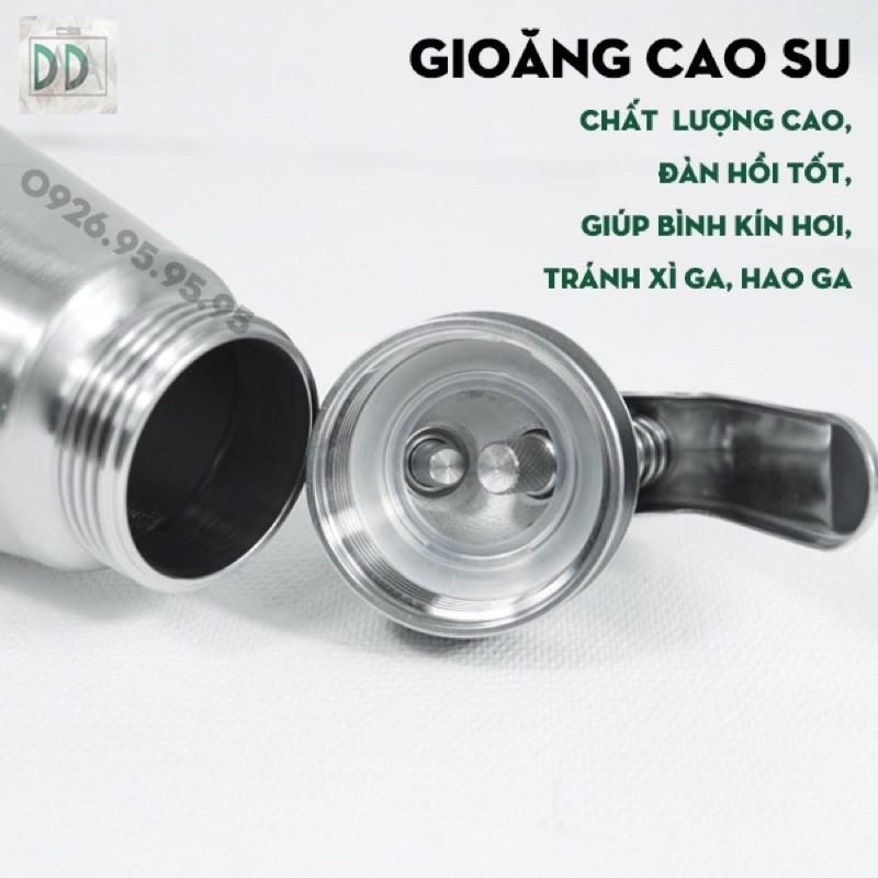 - Vòng đệm bên trong nắp được làm bằng silicon cùng với đầu sạc giúp việc giữ và ổn định áp suất khí nén vào kem tốt hơn, đảm bảo chất lượng kem luôn tươi và bông trong một thời gian sử dụng dài tới 14 ngày