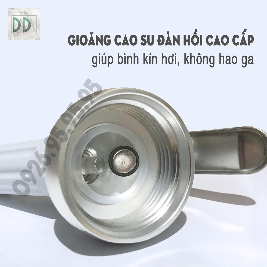 Bước 3. Vặn ống giữ gas vào nắp bình, lúc này bên trong bắt đầu có áp lực, vì vậy tuyệt đối không được tháo nắp bình xịt ra.