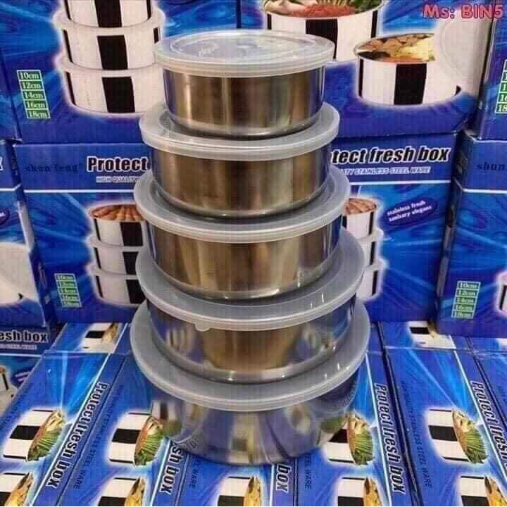 Nhà cửa & Đời sống > Bộ đồ bàn ăn > Tô || Sỉ Bộ 5 Bát Inox Đựng Thực Phẩm Có NắpCòn hàng