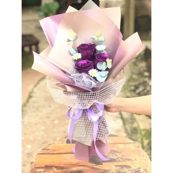 Sỉ Bó hoa sáp kim tuyến 3 bông