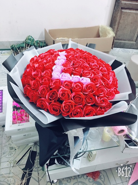 Bó 99 bông cực kì to , đường kính bề mặt khoảng 60-70cm nhé
