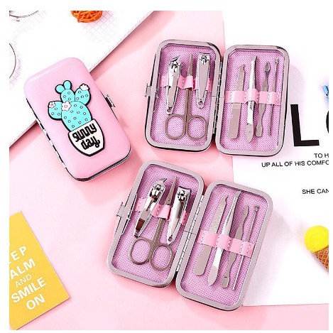 👉Ưu Điểm : đầy đủ các dụng cụ cơ bản để chăm sóc móng tay , gọn nhẹ dễ cất giữ, họa tiết dễ thương bắt mắt.
