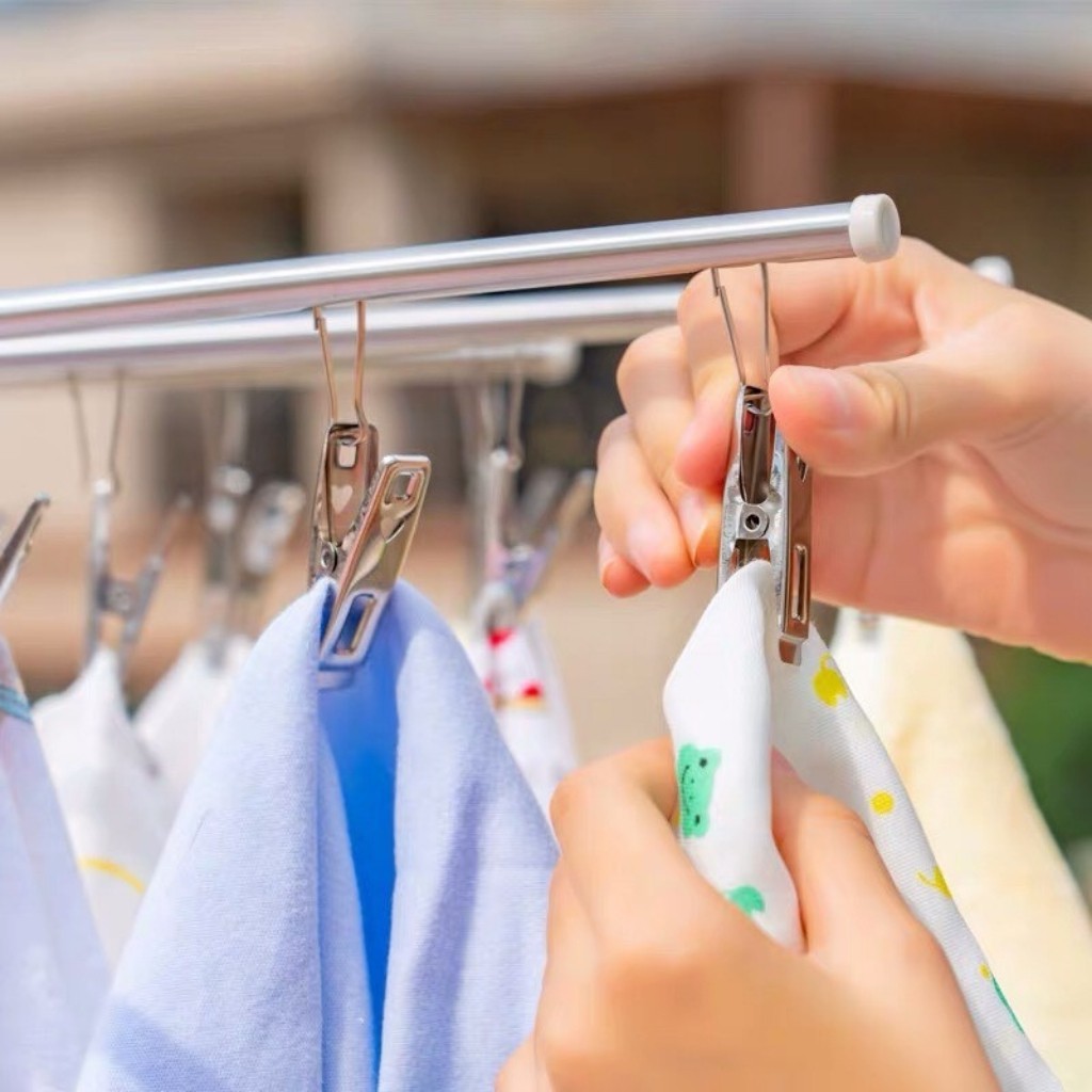 Khung và kẹp được làm bằng inox cao cấp, tuyệt đối không làm hư hại quần áo, chịu được nhiệt độ mặt trời. Thiết kế chắc chắn, cho thời gian sử dụng được lâu hơn