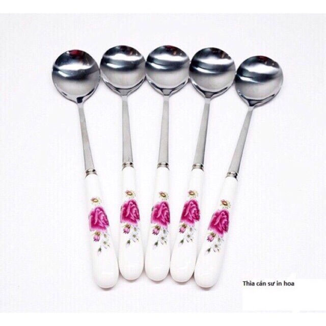 (Bán sỉ ) Combo 5 thìa cán sứ ăn cơm hàng cao cấp