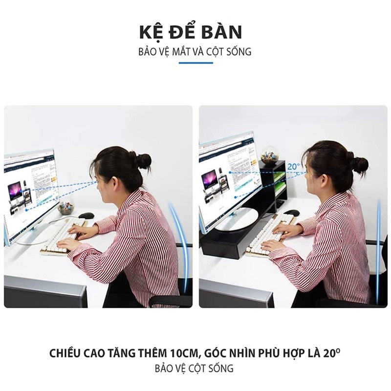 + Kệ máy tính 2 tầng : Rộng 50cm, Sâu 20cm, Cao 14cm