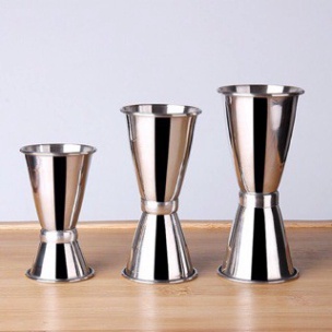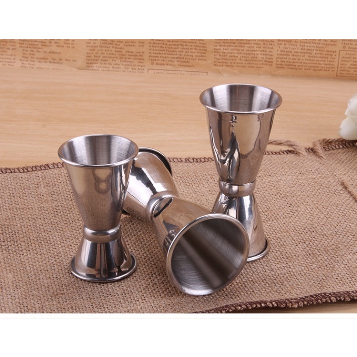 - Ly định lượng sỡ hữu thiết kế nhỏ gọn và đẹp mắt, dụng cụ được làm bằng chất liệu inox nên rất chắc chắn, ly gồm có một đầu lớn và đầu nhỏ được gắn chặt đối xứng với nhau. Phổ biến nhất ở Việt Nam hiện nay là loại có 2 đầu: đầu lớn 30cc, đầu nhỏ 10cc