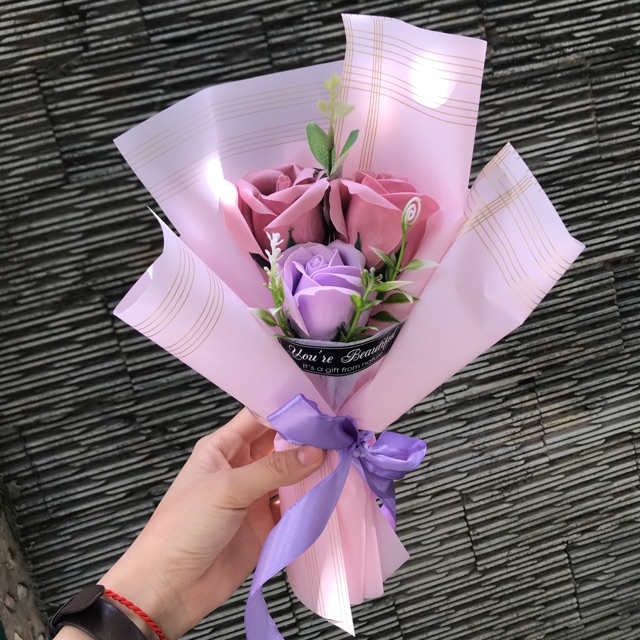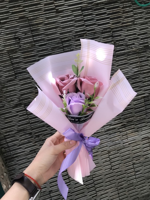 Bó Hoa Sáp 3 bông phối màu hồng nude và tím nhạt!!