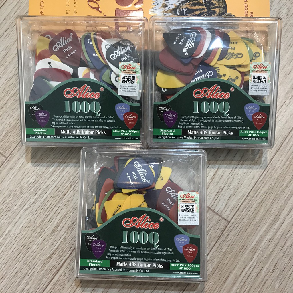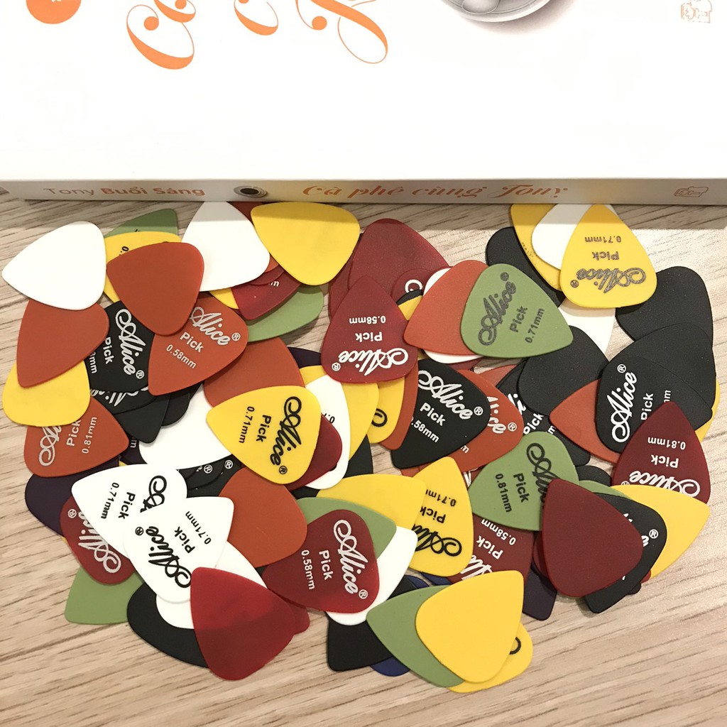 Sở thích & Sưu tầm > Nhạc Cụ & Phụ Kiện > Phụ Kiện Âm Nhạc || Bán sỉ hộp 100 chiếc móng gảy Alice 100Q kích thước 0.58, 0.71, 0.81Còn hàng