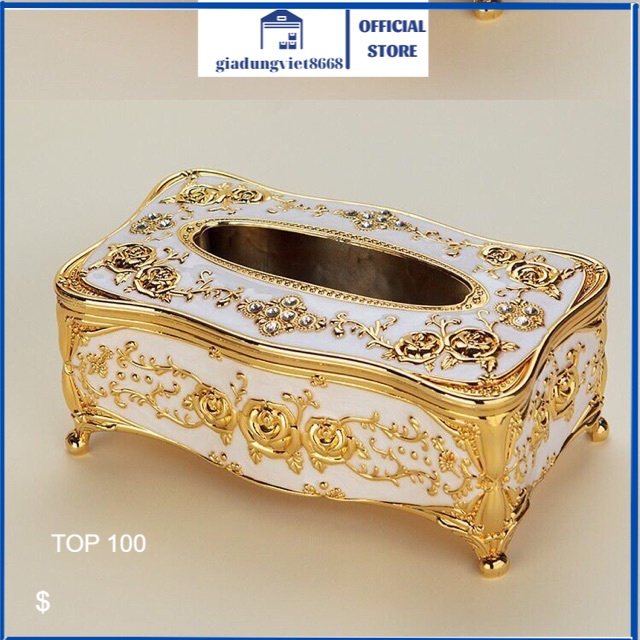 ✨hộp đựng giấy ăn được đúc ép chế tác hoa văn tinh xảo rất sang trọng . Được xưởng chế tạo cẩn thận từ bên trong đến bên ngoài hộp đựng giấy ăn . Hộp này làm bằng nhựa cao cấp . Mạ vàng và mạ bạc bằng công nghệ Pvd cực bền mầu .