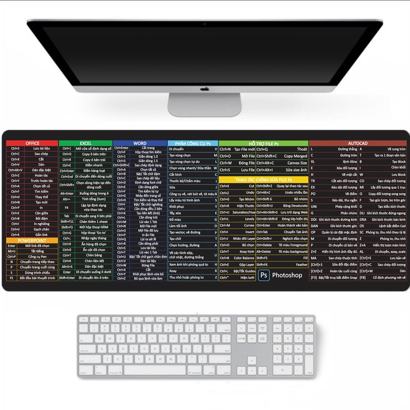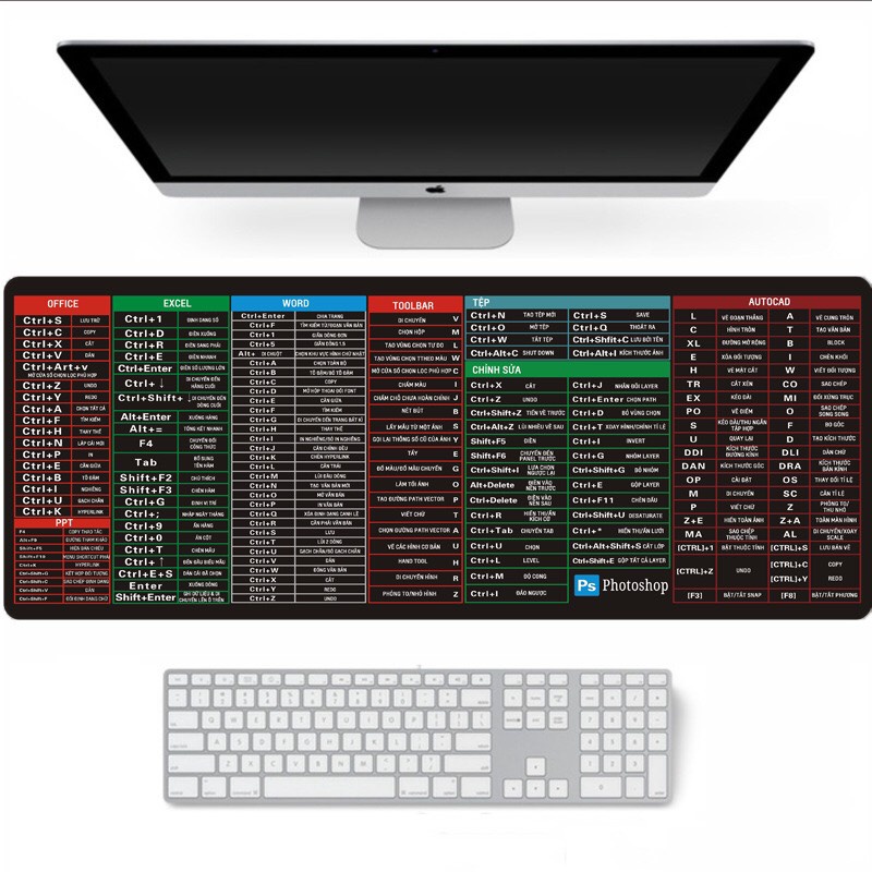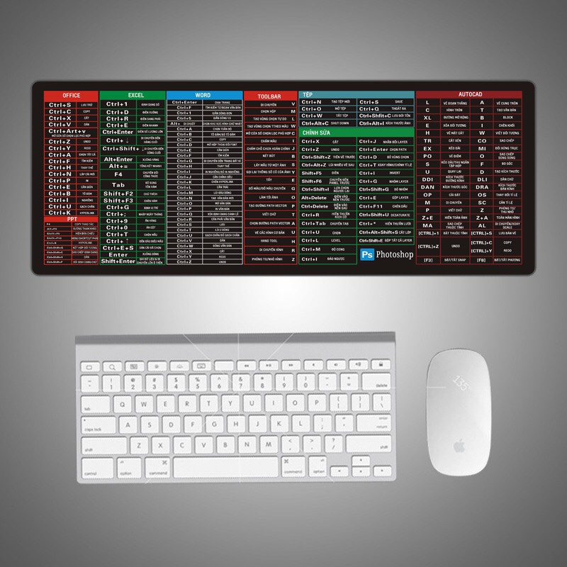 Lót chuột phím tắt bo viền Văn Phòng Tiện dụng cỡ lớn 80x30 bảo hàng 12 tháng💕💕 LÓT CHUỘT VĂN PHÒNG, EXCEL, Word, PP, CAD, PS toàn bộ phím tắt thông dụng đều được tổng hợp trong tấm lót chuột phím tắt văn phòng tiện lợi