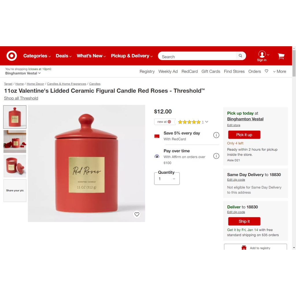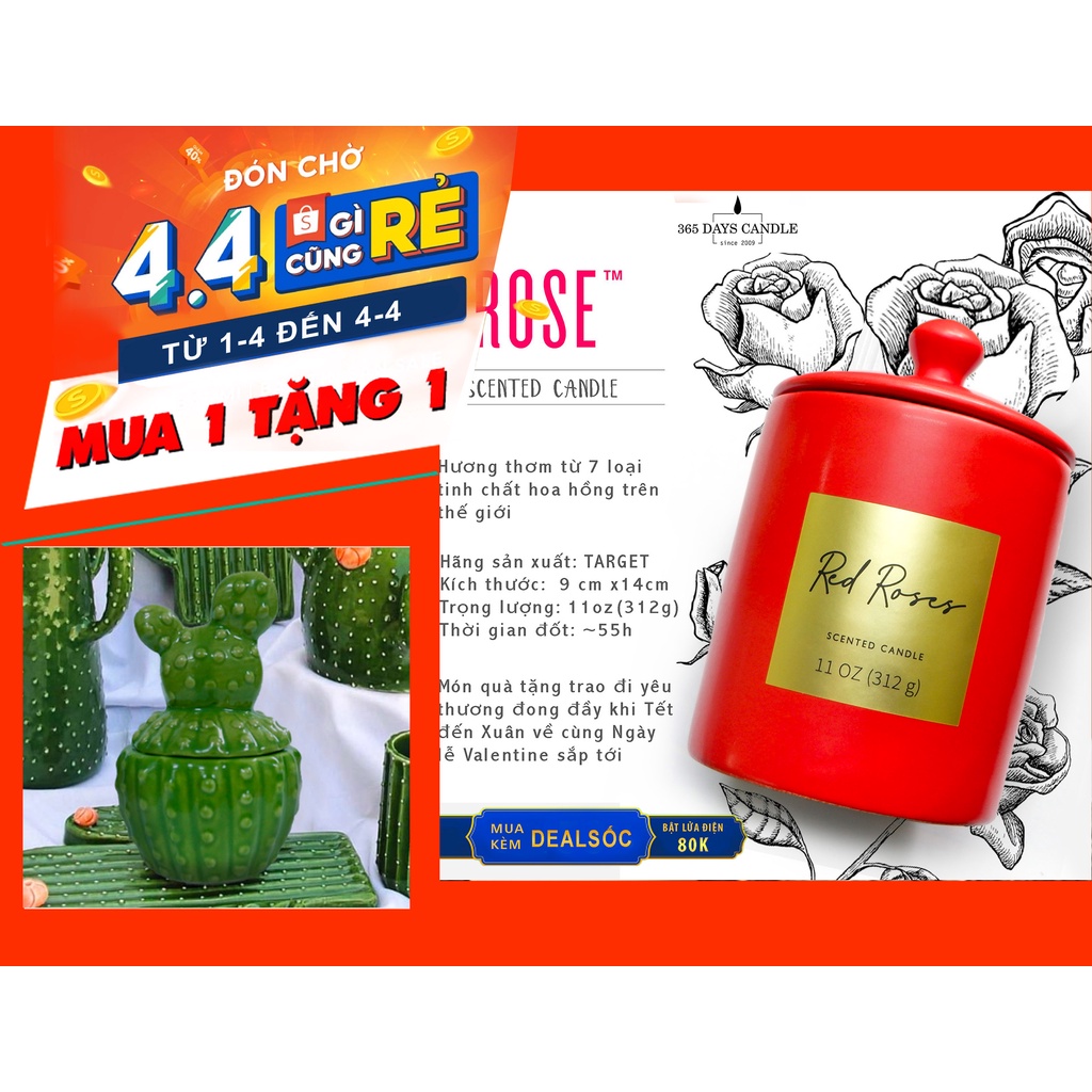 🌹 Thật sự mình rất thích 😍 sản phẩm này của Target với thiết kế hũ nến làm bằng gốm,và hương thơm từ 7 loại tinh chất hoa hồng trên thế giới.Thật thú vị khi thắp sáng ngọn nến nó sẽ tạo ra một không gian tràn ngập hương hoa hồng trong căn phòng của bạn. Cốc sứ tuyệt đẹp mà bạn cũng có thể sử dụng làm điểm nhấn trang trí cho căn nhà. Và cũng thật lý tưởng khi hũ nến Red Roses 🌹 là món quà tặng trao đi yêu thương đong đầy khi Tết đến Xuân về cùng Ngày lễ Valentine sắp tới.