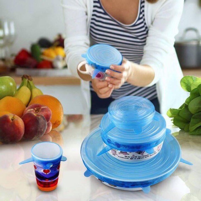 Sỉ lẻ BỘ 6 NẮP SILICON ĐẬY BÁT ĐĨAKích cỡ khác nhau, co giãn để vừa với mọi loại chén dĩa, xoong nồi. Ko cần màng bọc thực phẩm, ko cần túi zip nữa. Chỉ 6 chiếc nắp này là đủ. Hộp tròn hộp vuông đều có thể bọc vừa hết. Kín tuyệt đối. Có thể dốc ngược mà ko lo bị trào nước.