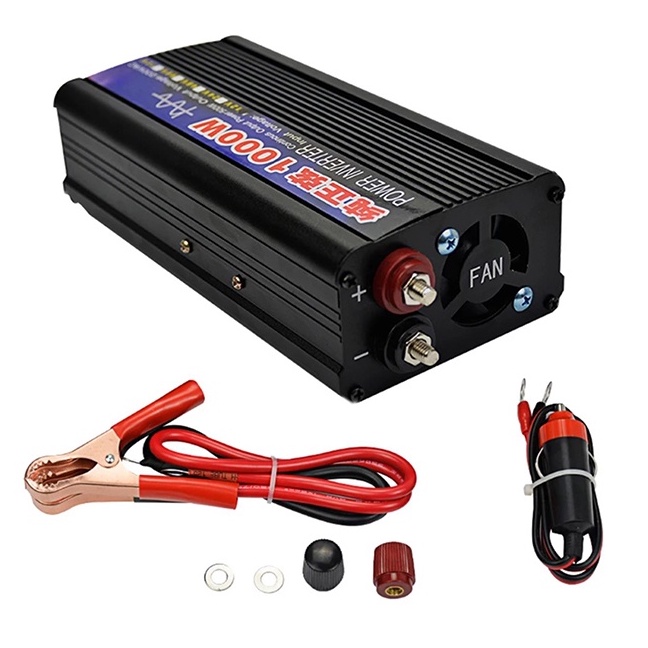 ⛵ BỘ KÍCH ĐIỆN INVERTER 12V - 220V - 1000W SIN CHUẨN - CÔNG SUẤT THỰC 750W - KẸP CÁ SẤU + TẨU DÙNG Ô TÔ