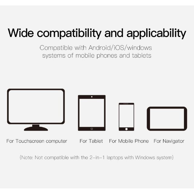 - Bút cảm ứng dùng cho mọi màn hình cảm ứng điện dung. Tương thích tốt với tất cả các smartphone và tablet hiện này từ Android cho đến iOS .