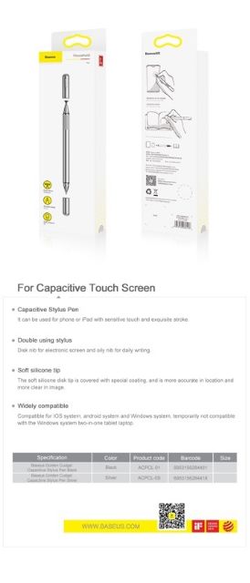 Thông Số Sản Phẩm : Bút cảm ứng điện dung 2 trong 1 Baseus Golden Cudgel Capacitive Stylus Pen cho Smartphone / Tablet/ iPad (Capacitive Stylus Touch Drawing Pen)-Thương hiệu : Baseus