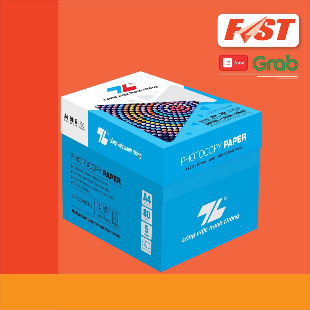 Giấy In Thiên Long A4 80gsmSản phẩm thiết kế khổ giấy A4, thích hợp sử dụng làm giấy in, photo trong các văn phòng hoặc trong gia đình. Bạn cũng có thể sử dụng để viết, vẽ sơ đồ hoặc phác thảo các bản vẽ một cách đơn giản và nhanh chóng.