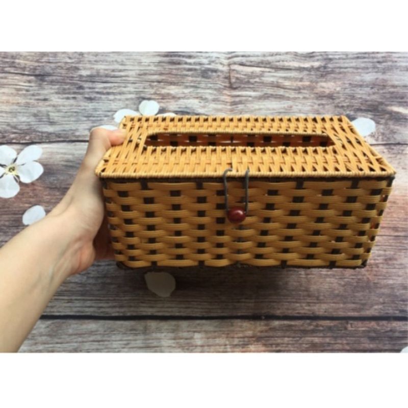 #Sỉ - lẻ# Hộp đựng giấy ăn vuông to, bé, nhỡ chữ nhật nhựa giả đan mây đan hiện đại - mở khóa nắp 1 bên - hàng dày đẹp