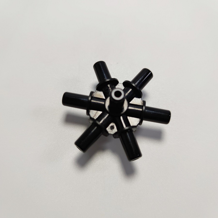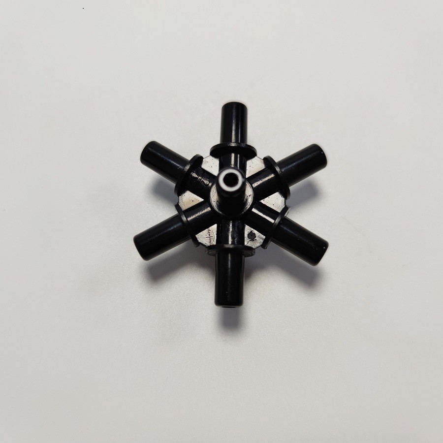Đầu chia 7 hướng 6mm dùng để lắp ráp vòi phun sương 7 cửaĐầu chia 6 hướng dùng kết hợp với các linh kiện khác để lắp ghép thành bộ vòi phun sương 7 cửa.