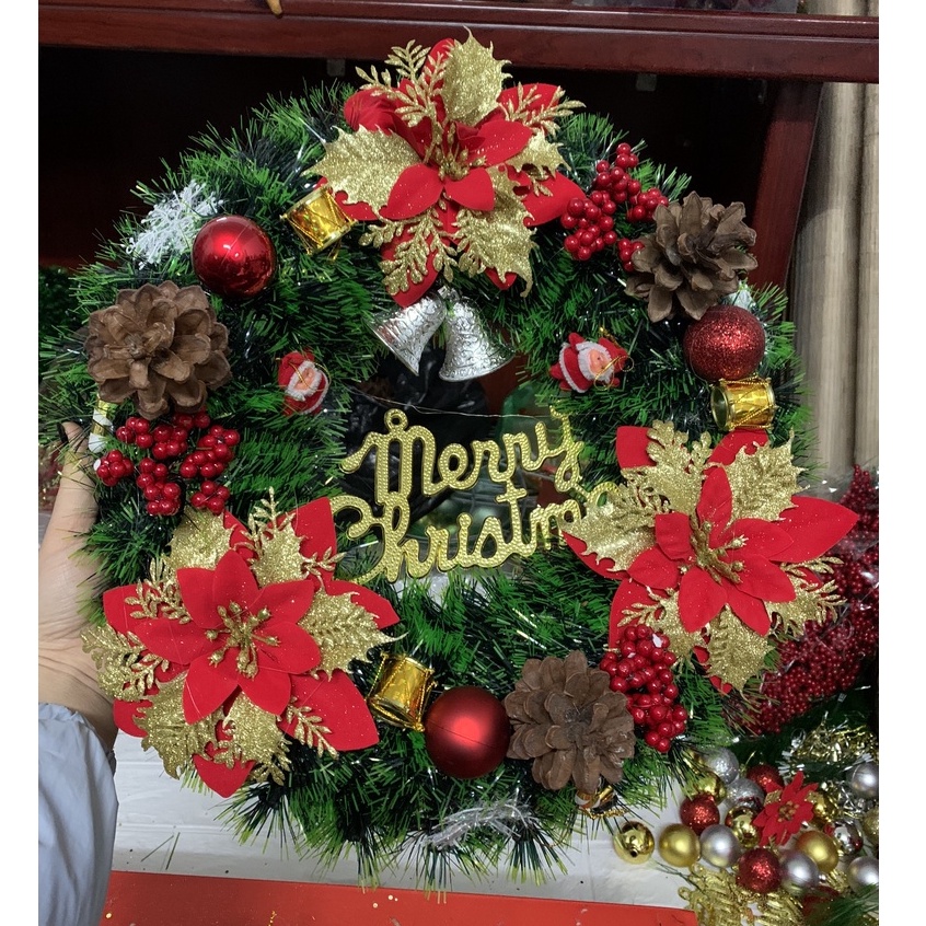 [SỈ LẺ PHỤ KIỆN NOEL] VÒNG NGUYỆT QUẾ TREO CÂY THÔNG, TREO CỬA đường kính 30cm tặng kèm 1 móc dán tường siêu dính