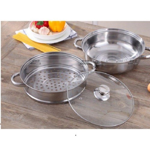 Nồi hấp inox 2 tầng size 28 cmNồi hấp inox 2 tầng cao cấp có thiết kế chắc chắn, không gỉ sét, dùng được trên các loại bếp gas, bếp điện, bếp hồng ngoại thích hợp cho việc nấu các món như luộc, ninh, hầm..