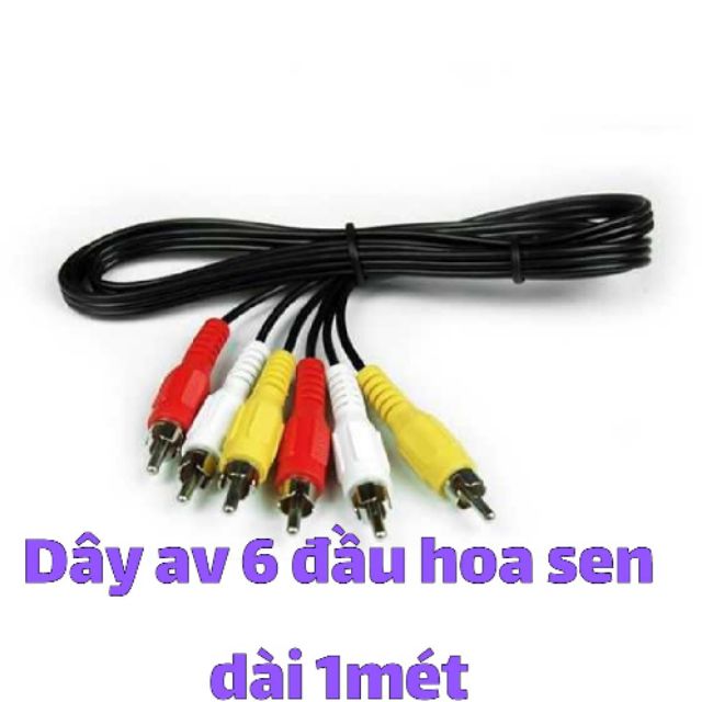 Loại: dây AV 6 đầu hoa sen. - Kiểu kết nối: Jack hoa sen - Độ dài: 1-5m Cable AV 6 đầu dùng kết nối đầu đĩa lên tivi- máy chiếu cho ra âm thanh và hình ảnh rõ nét