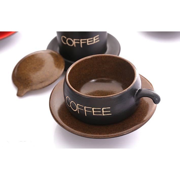Nhà cửa & Đời sống > Bộ đồ bàn ăn > Dĩa || [Sỉ] Set cốc tách+đĩa cafe coffee nóng bằng gốm sứ Bát Tràng cao cấp men đen lòng nâu sang chảnh dày dặn đẹp (110ml)Còn hàng