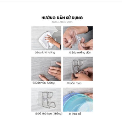 - Móc dán tường tiện dụng bền, chịu nước, không bong tróc.