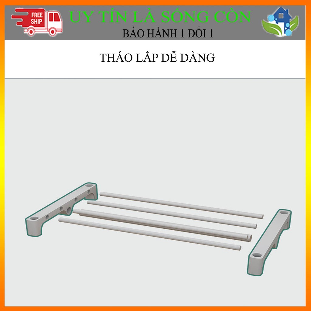 - Giàn treo quân áo Chữ H Tiện Dụng với thiết kế vô cùng gọn gàng tiện lợi sẽ là vật dụng vô cùng hữu ích giải quyết tất tần tật những mối lo ngại về việc các loại quần áo, giày dép chiếm quá nhiều không gian dẫn đến tình trạng bừa bộn, mất thẩm mỹ, lại thường hay làm mất đồ. Nay chỉ với 1 chiếc tủ nhỏ nhắn có thể chứa từ quần áo, giày dép đến mũ, túi xách, vali,…