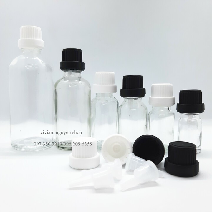 {sỉ từ 2,5k} Lọ đựng tinh dầu 10ml, thân thuỷ tinh trong suốt, nhỏ giọt nắp nhựa PP