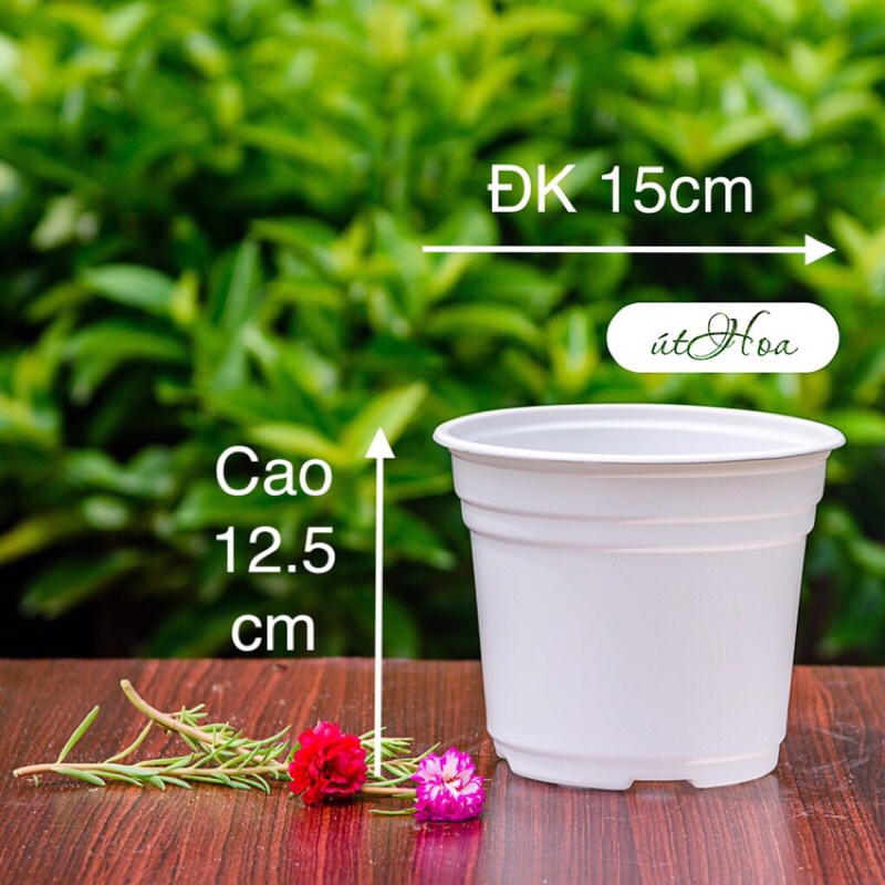 [Sỉ từ 20 cái] Chậu nhựa trắng T15 (15x12.5 cm) trồng cây, trồng hoa nhựa cao cấp