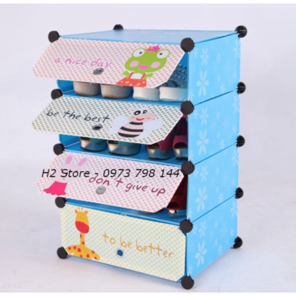 [SỈ] - TỦ NHỰA LẮP GHÉP ĐỂ GIÀY DÉP 4 Ô XANH DƯƠNG HOA CỬA DỄ THƯƠNG (cbi)