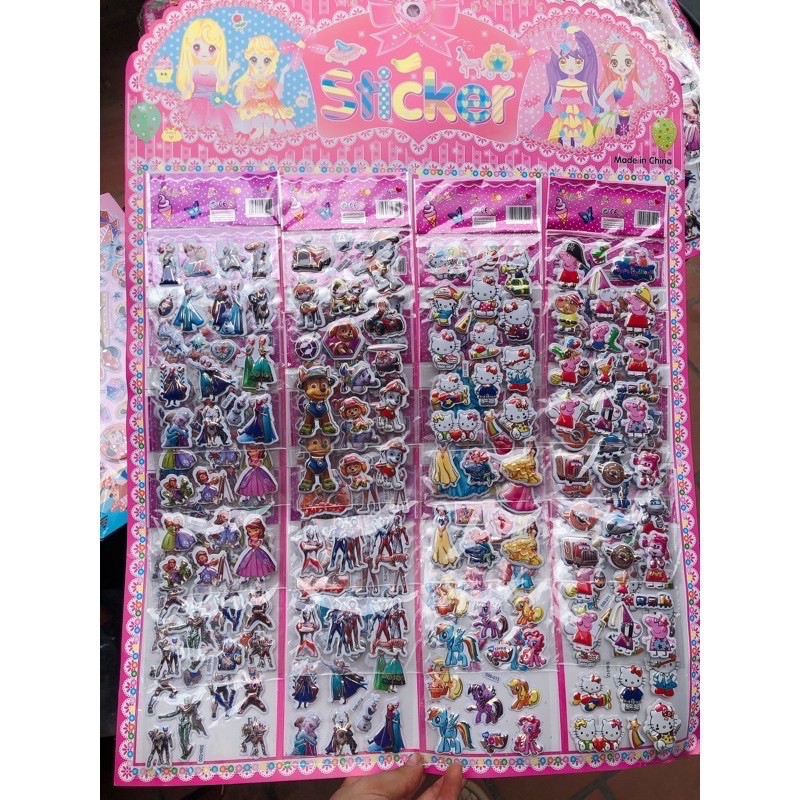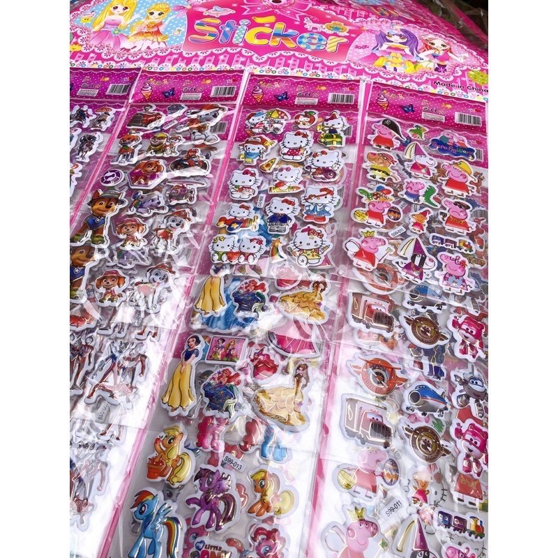 sỉ vỉ 20 tờ dán nổi 3D loại dày nhiều hình đáng yêu chủ đề siêu nhân, công chúa