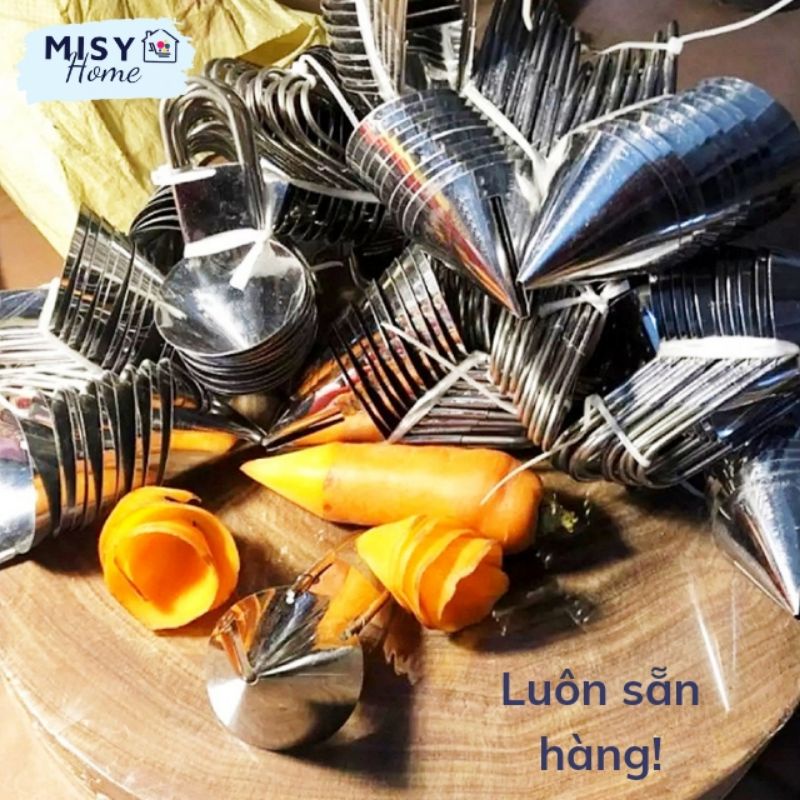 Nhà cửa & Đời sống > Dụng cụ nhà bếp > Bàn nạo, dụng cụ bào, cắt || [sỉ] Xoáy hoa cà rốt inox phễu xoáy tỉa hoa trang trí món ăn MISY HOME nhà hàng gia đình cỗ tiệc liên hoan siêu sắc bénCòn hàng