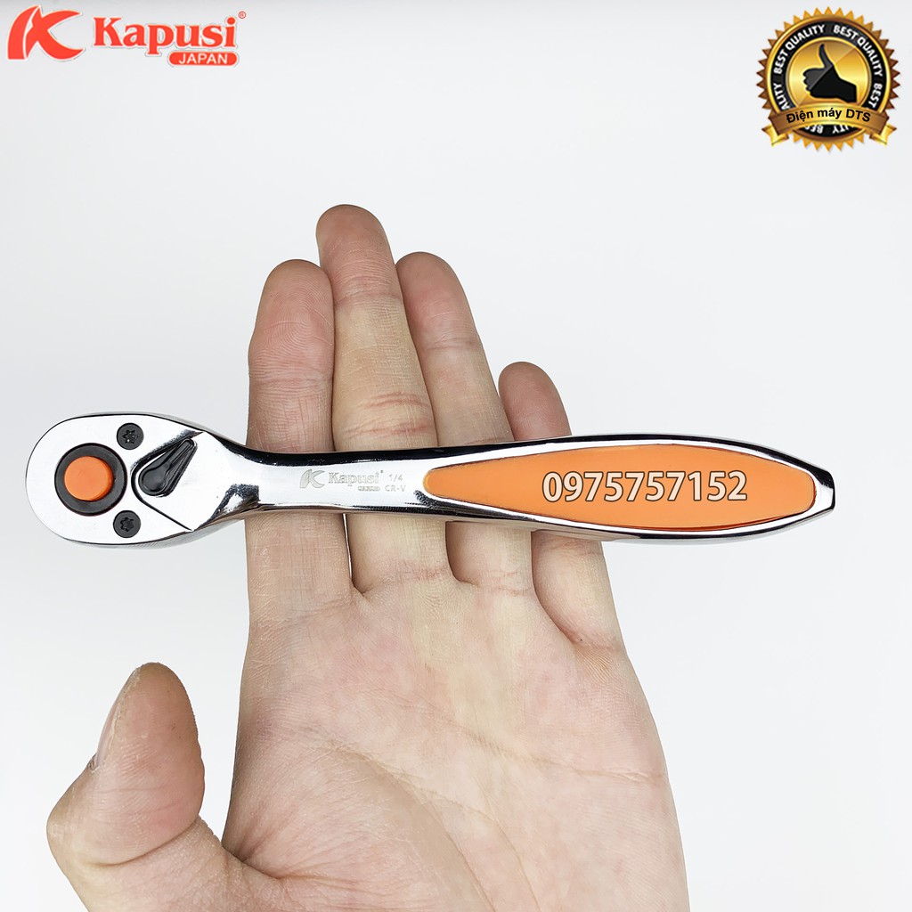 Cần siết tự động hai chiều 1/4 inch dài 15cm Kapusi Japan Nhật Bản cao cấp, tay vặn tự động đảo chiều thép nguyên khối