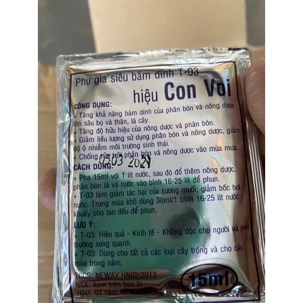 Giới thiệu Siêu bám dính T-03 Hiệu Con Voi gói 15ml dùng trong nông nghiệp