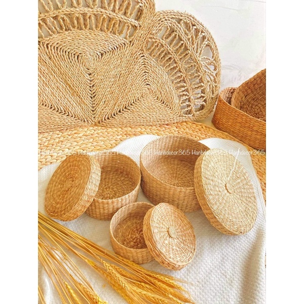 Nhà cửa & Đời sống > Trang trí nhà cửa > Khác || (Siêu bền đẹp) Hộp cói tròn có nắp size S/M/L đựng đồ đa năngCòn hàng