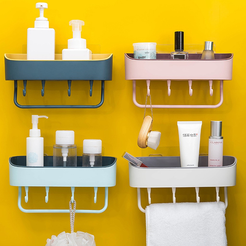 Nhà cửa & Đời sống > Đồ dùng phòng tắm > Kệ để đồ phòng tắm || [SIÊU BỀN] Kệ Để Đồ Nhà Tắm, Phòng Bếp - Kệ Dán Tường Đa Năng Có Móc Treo Khăn Tắm Tiện LợiCòn hàng