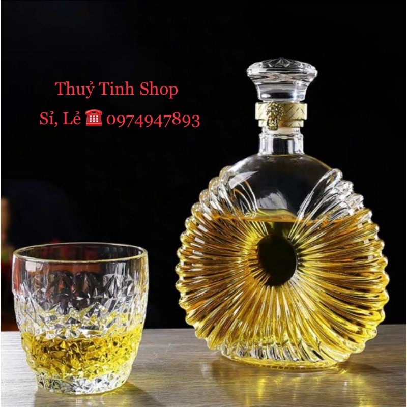 [ SIÊU CẤP ] Bình Đựng Rượu Thuỷ Tinh Cao Cấp Mẫu OX Viền Vòng 750ml. Chai đựng rượu